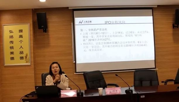 朱艷總裁應(yīng)邀為參會企業(yè)作了《IPO審核風(fēng)向》的專題輔導(dǎo)報告。朱總從新近IPO上會審核情況引入,解讀了發(fā)審委最新審核思路、IPO過程中的相關(guān)法律、財務(wù)政策和注意事項。整場報告,簡潔高效、層次分明、時效性強,做到了專業(yè)性與實用性相結(jié)合、理論知識與案例分享相結(jié)合、主題授課與互動交流相結(jié)合,有效幫助企業(yè)了解資本市場最新動態(tài),為企業(yè)IPO之道提供了精準(zhǔn)輔導(dǎo)。