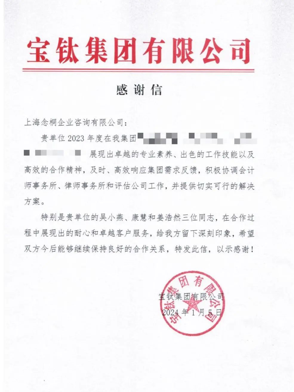 連日來,念桐咨詢業(yè)務(wù)團(tuán)隊(duì)在工作方面的突出表現(xiàn),收到了各位客戶的大力認(rèn)可,一封封感謝信、表揚(yáng)信紛至沓來。字里行間是對我們的充分信賴與認(rèn)可,代表著榮譽(yù),更意味著責(zé)任,