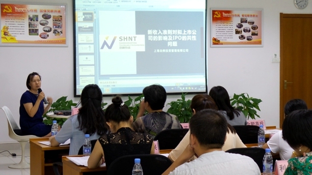 培訓(xùn)中,朱艷總裁根據(jù)財政部發(fā)布的《企業(yè)會計準(zhǔn)則第14號——收入》部分,以專業(yè)的財務(wù)知識、豐富的從業(yè)經(jīng)驗、敏銳的視角為參會者系統(tǒng)介紹了新舊準(zhǔn)則的變化對比、新準(zhǔn)則下收入確認(rèn)和計量的“五步法”模型、新準(zhǔn)則實施后對若干行業(yè)會計處理的影響三方面內(nèi)容,同時從盈利問題、財務(wù)規(guī)范要求和非財務(wù)共性問題三方面分析了IPO存在的普遍性問題。此次培訓(xùn)解讀具體,針對性強,有助于讓企業(yè)準(zhǔn)確理解新會計收入準(zhǔn)則,做好新舊準(zhǔn)則變化下的企業(yè)財務(wù)處理和資本市場的財務(wù)對接工作。