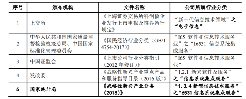 公司所屬行業(yè)分類情況如下,屬于科創(chuàng)板重點支持的高新技術(shù)產(chǎn)業(yè)和戰(zhàn)略性新興產(chǎn)業(yè),符合科創(chuàng)板的行業(yè)定位要求。